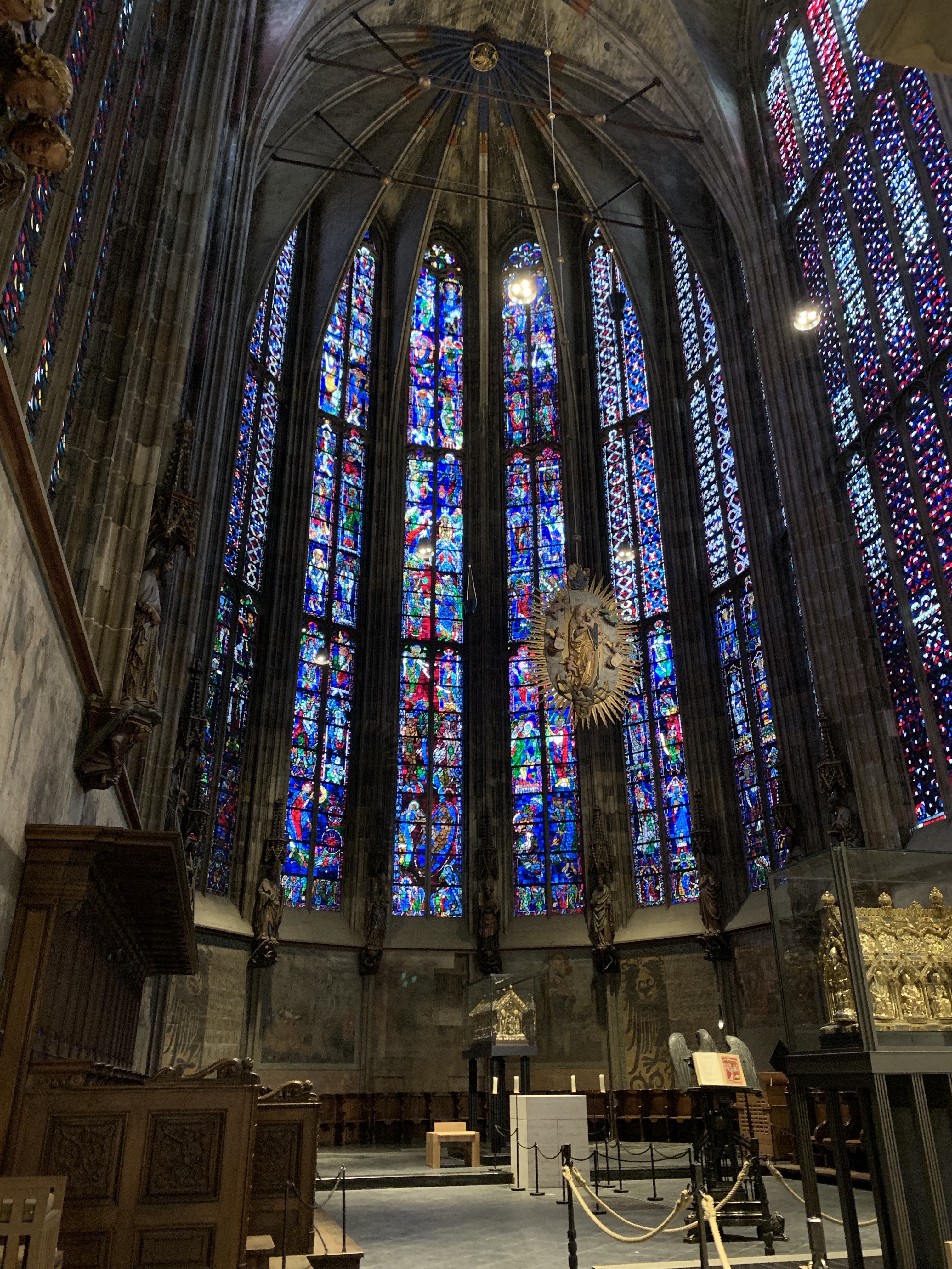 After our visit to the Three Country Boarder, we went to the famous Aachen Cathedral, which was built by order of Emperor Charlemagne around 800 AD. While exploring the cathedral, I learned that it is one of four major pilgrimage sites in Christianity, housing four significant relics such as the clothes of the Virgin Mary and Jesus’ swaddling clothes. The Cathedral is also the burial place of Charlemagne who was king of the Franks from 768, king of the Lombards from 774, and emperor of the Romans from 800. Additionally, the site is where kings and queens of Germany were once coronated. As a result of its historical significance, there is a pilgrimage to the Cathedral every seven years when the relics are put on display. Its artistic, religious, and historical importance are why it is cherished by the people of Aachen.